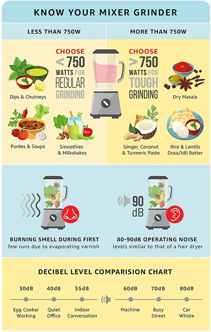 - When compared to any other Indian brand mixie on the market, this one is one of the best and has a strong 550-watt heavy-duty motor that is UL certified for extra safety.